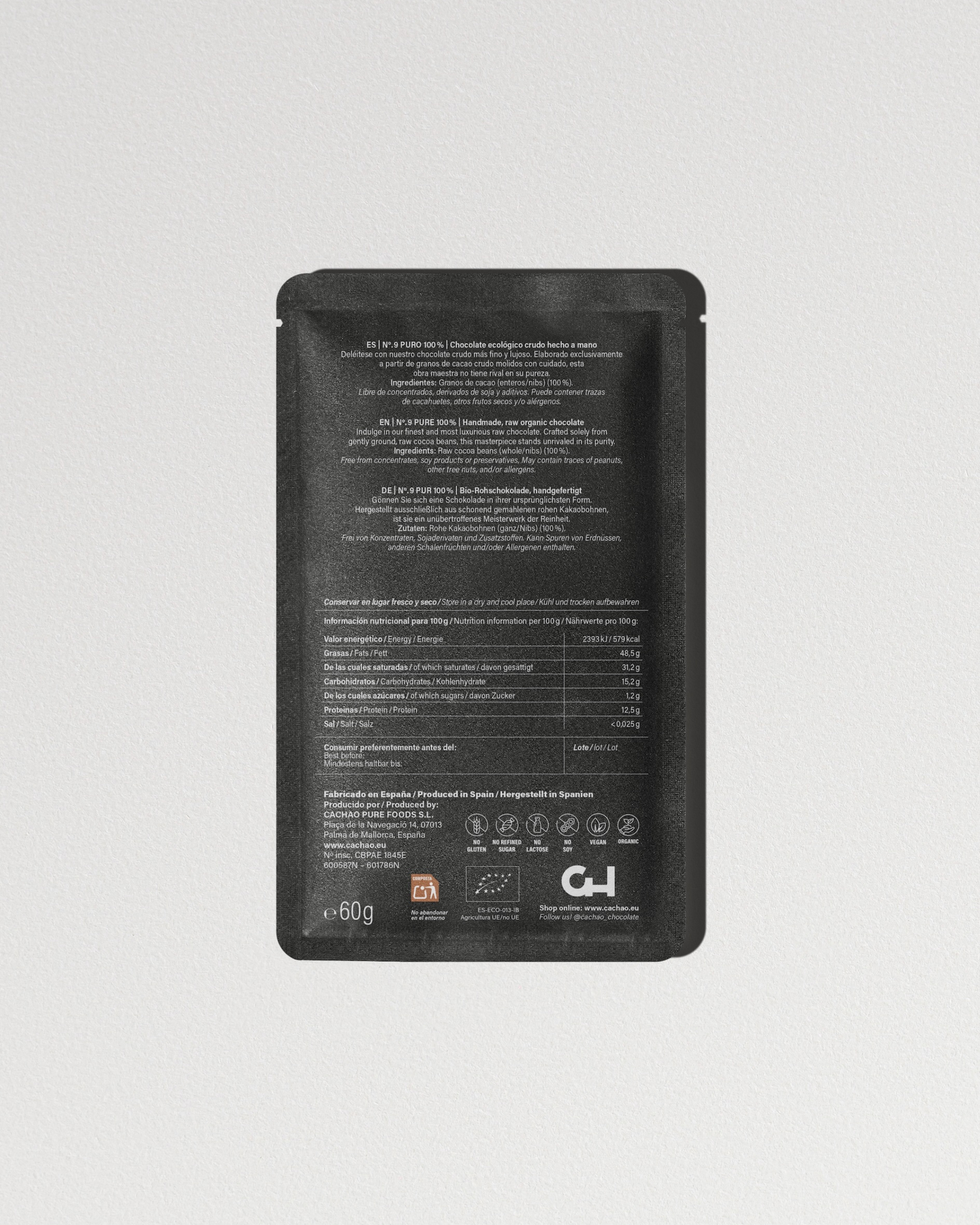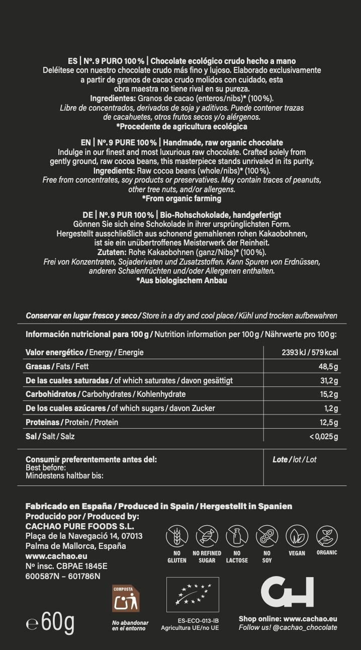 Ingredientes limpios Cachao es 100% crudo, vegano, orgánico, sin gluten, sin soja - sin compromisos.