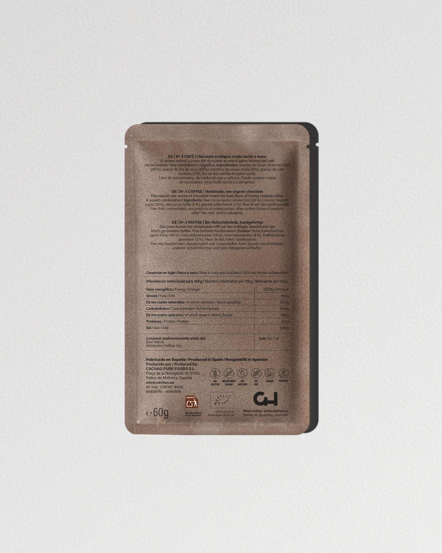 Cachao sigue un proceso de producción cuidadosamente controlado que dura 4 días, para garantizar la máxima calidad, manteniendo la temperatura de la masa de cacao por debajo de 42°C para preservar todos los valiosos nutrientes.