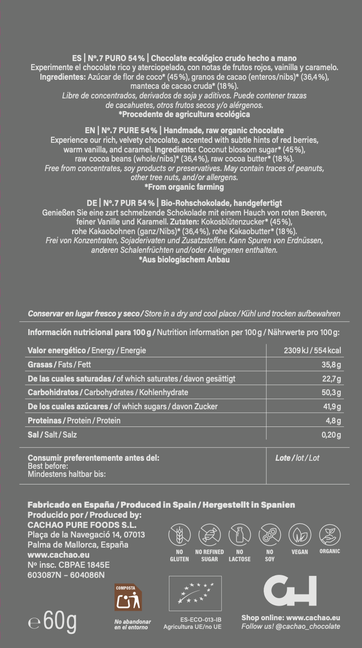 Cachao sigue un proceso de producción cuidadosamente controlado que dura 4 días, para garantizar la máxima calidad, manteniendo la temperatura de la masa de cacao por debajo de 42°C para preservar todos los valiosos nutrientes.